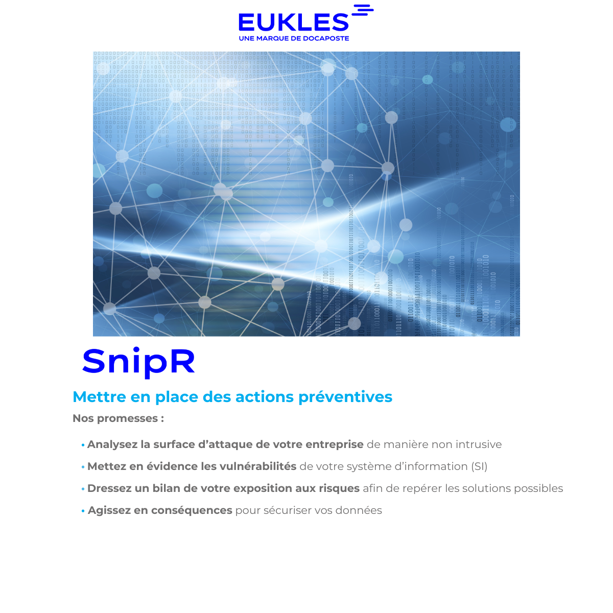 La solution SnipR permet d’analyser la surface d’attaque d’une entreprise, de manière non intrusive, comme un scan, afin de mettre en évidence les vulnérabilités du système d’information (SI).